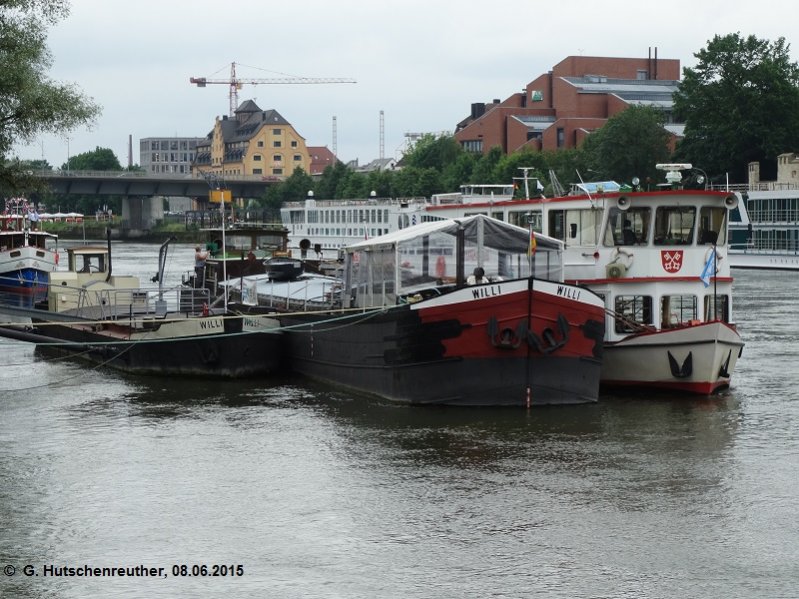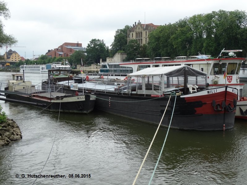 Hier liegt er am 8.6.2015 neben dem als Anleger fungierenden WILLI des AK Schiffahrtsmuseum Regensburg.