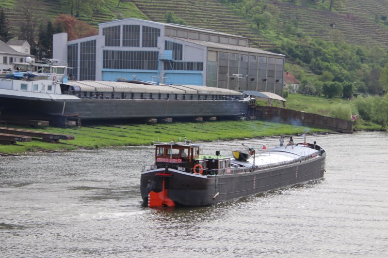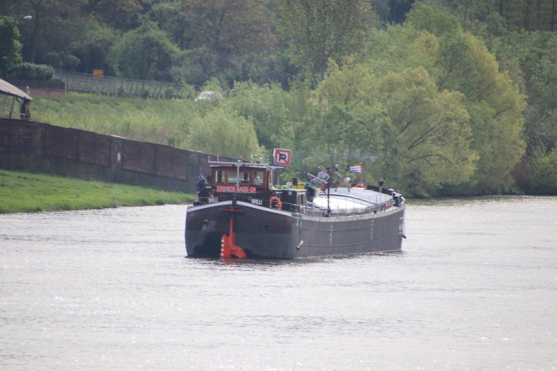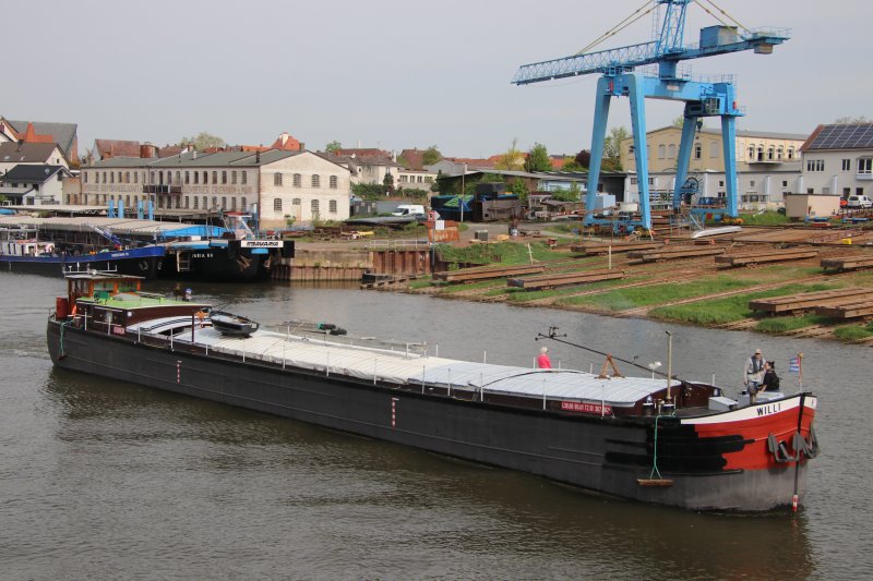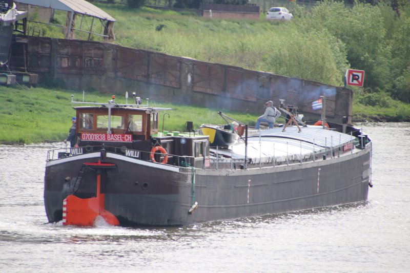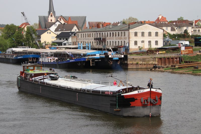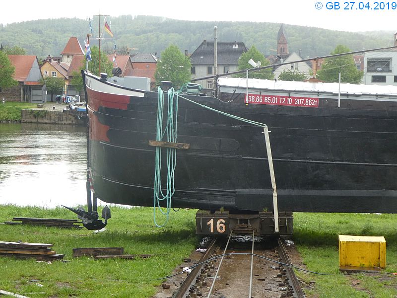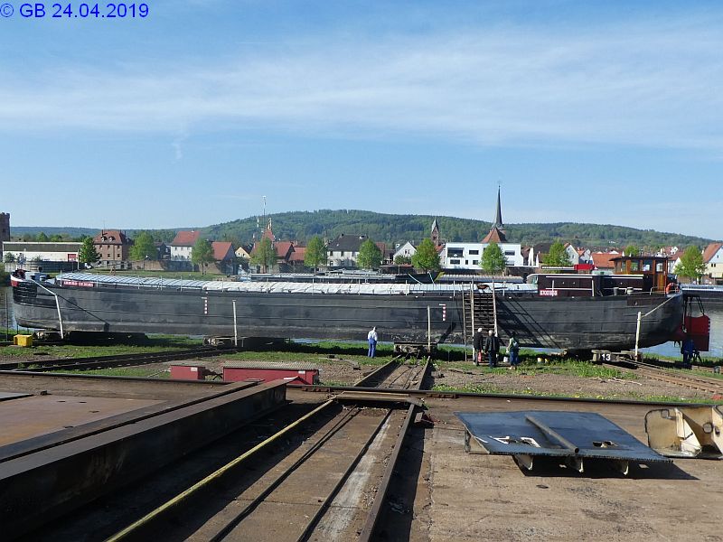 Das GMS Willi gestern bei de Schiffswerft von Erlenbach wartend auf de Hellingswagens.