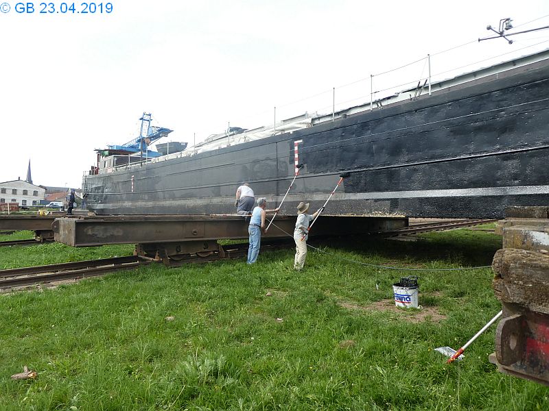 Vielen Dank an Reinier für die super Bilder (#261) vom 23. April 2019 von WILLI. Es dauerte etwas, bis die 4 Hellingwagen für WILLI im Wasser waren.