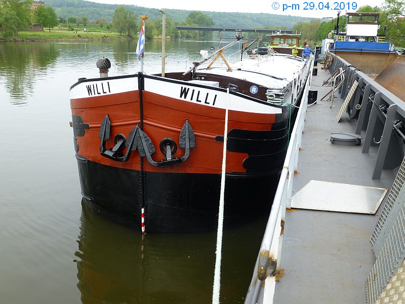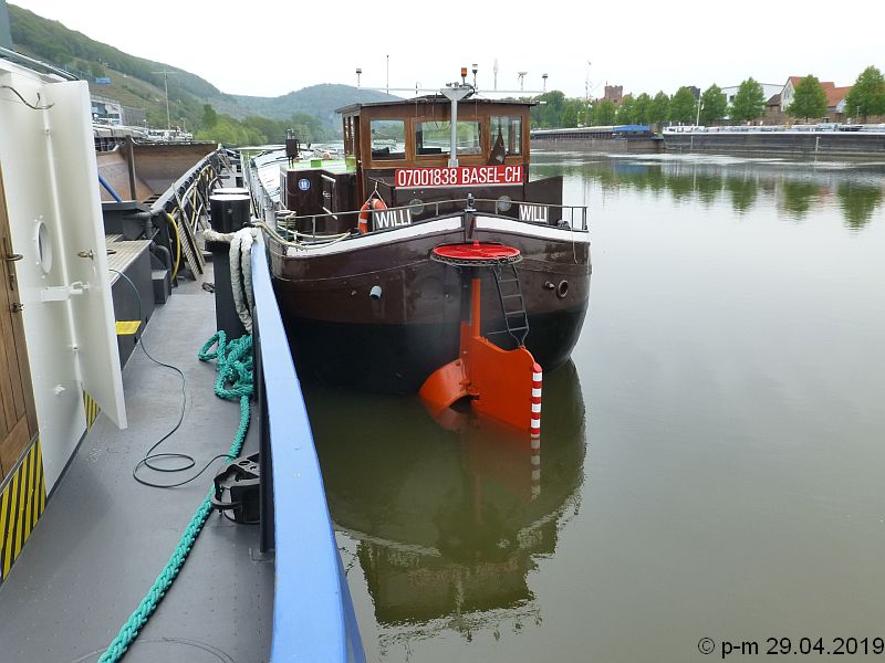 @ McRonalds: Nach der Einwasserung vom 29. April 2019 musste die Werft noch Schweissarbeiten im Maschinenraum ausführen, dazu durfte WILLI auf Seit der Motorklappschute DOMARIN 34 (ex MS 91) am sog. Ausrüstungsquai liegen. Bei dieser Gelegenheit konnte ich Fotos machen; schau hier.