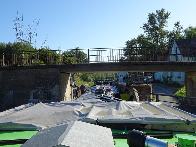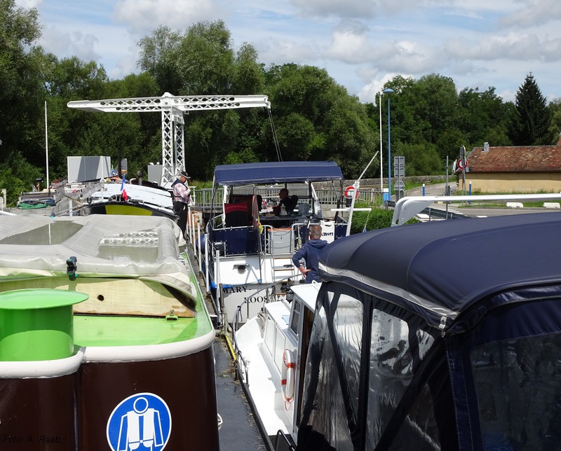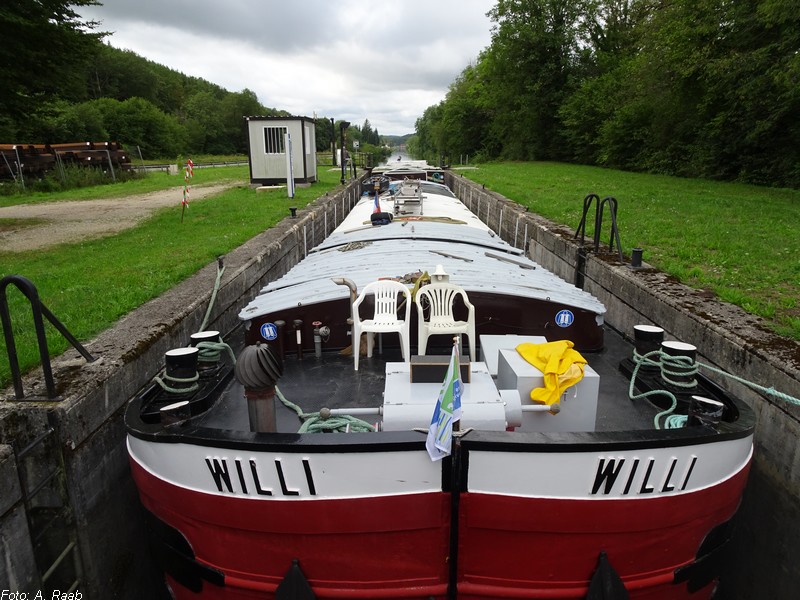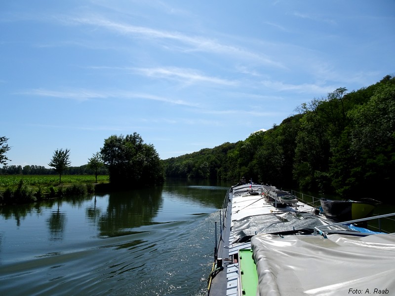 Streckeverlauf: Mosel, Rhein-Marne Kanal, Embranchement de Nancy (Verbindungskanal zwischen Rhein-Marne Kanal und Canal des Vosges), Canal des Vosges (Vogesenkanal), Petite Saóne, Rhein-Rhone Kanal.