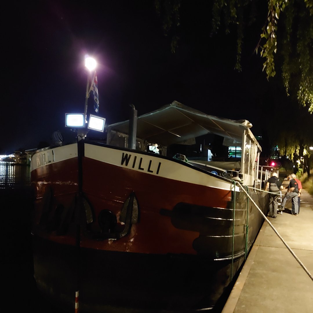 Wie Gamperdona erwähnte, lag WILLI von August bis Anfang Oktober 2021 am sog. "Kultursteiger" (ehemaliger Lotsensteiger der Schweizerischen Rheinhäfen) an der Uferstrasse in Basel-Kleinhüningen auf Strom.