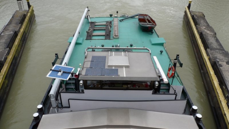 Ich habe ein Foto nur vom Buck des Schiffes..Meine Frage ist was das für ein Gestell da vorne Außenbords sein soll..Konnte nicht mehr Bilder machen, weil das Schiff war zu schnell