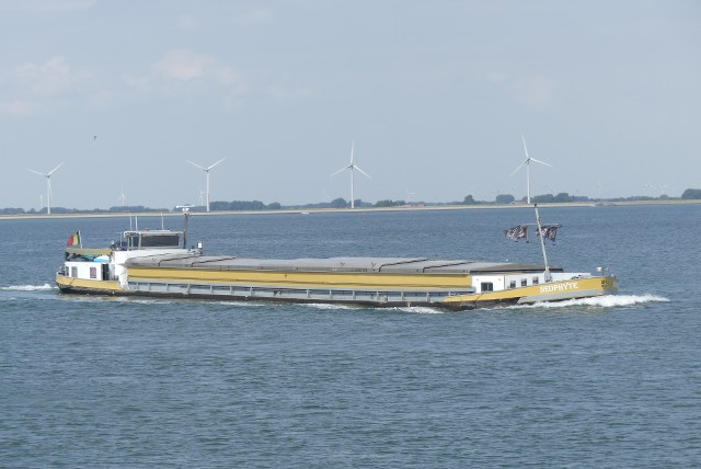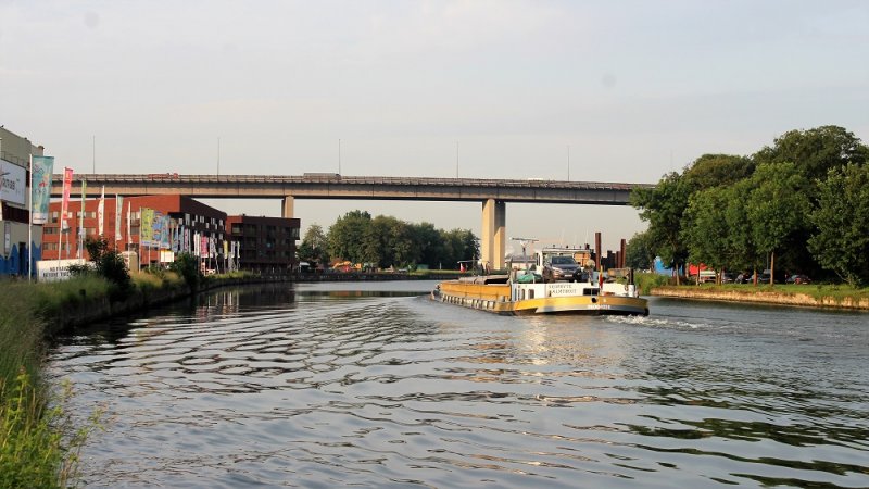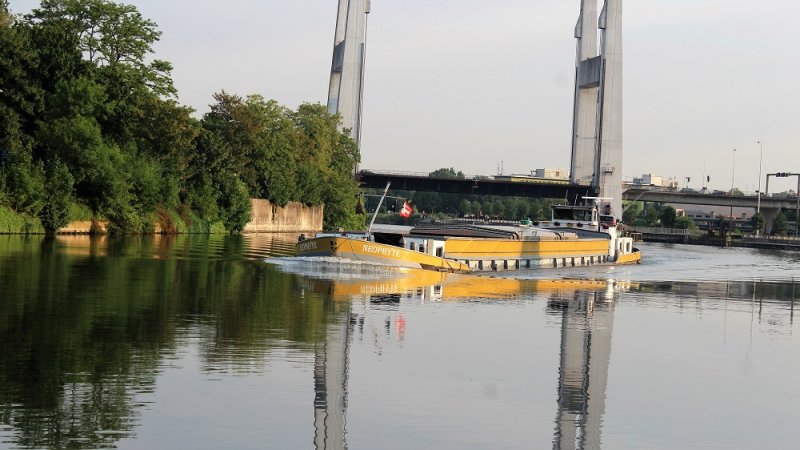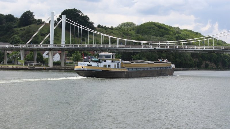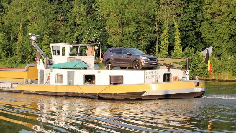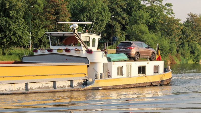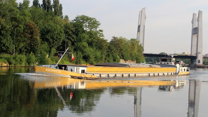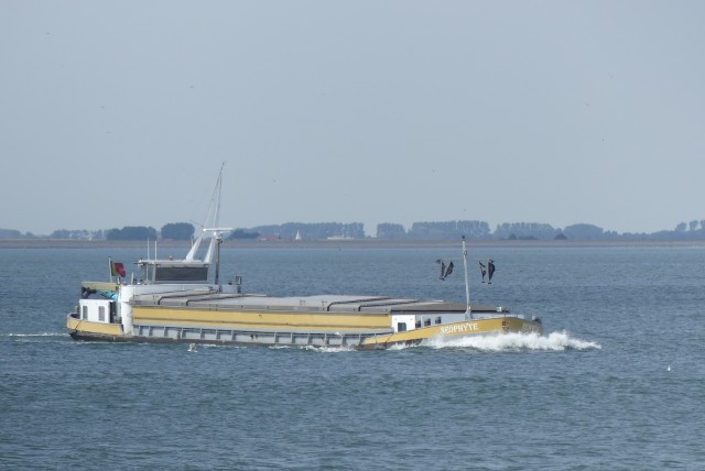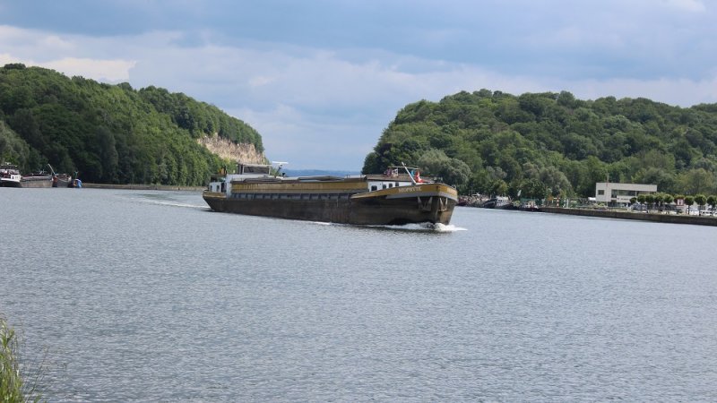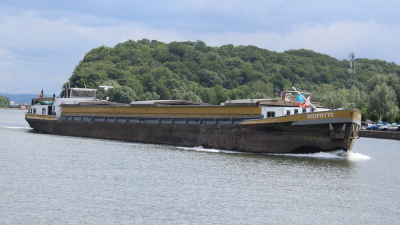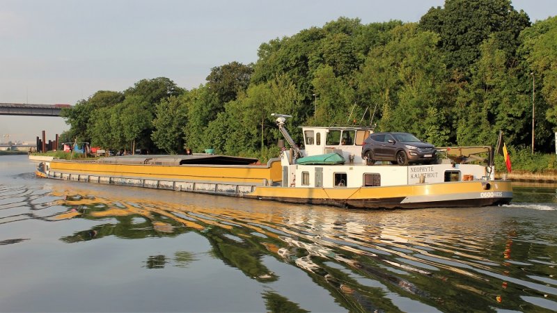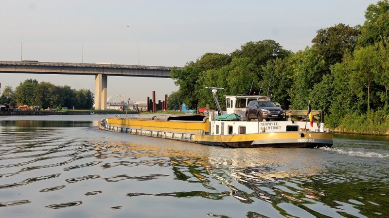 Hier fährt das Belgische Frachtschiff Neophyte geladen von Antwerpen kommend in Richtung Brüssel.