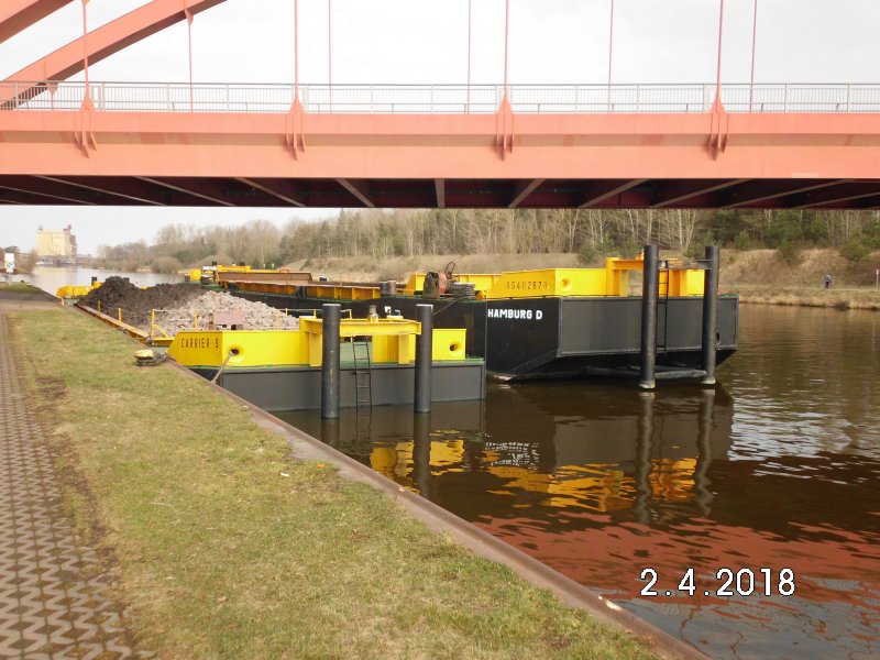 Die beiden Schuten Carrier 9 und 10 lagen heute an der UHH in Haldensleben.